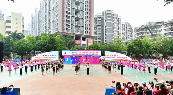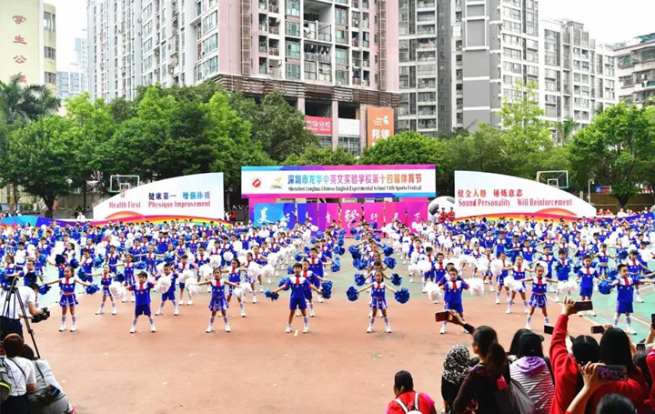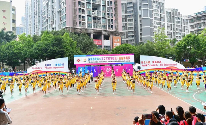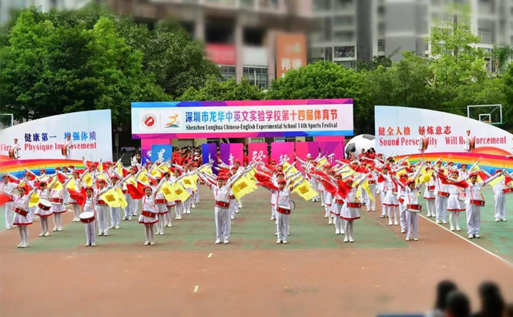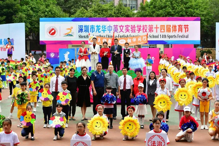 2018年12月5日上午,深圳市龍華中英文實驗學(xué)校運動場上彩旗飄舞,樂聲悠揚,充滿勃勃生機。學(xué)校第14屆體育節(jié)在這“健康、成長、快樂”的主旋律中隆重開幕。參加本次活動的有區(qū)體育教研員隋海林老師,集團研究院常務(wù)副院長、總校校長畢國軍博士,結(jié)對學(xué)校龍華中學(xué)、新華中學(xué)有關(guān)領(lǐng)導(dǎo),駐區(qū)有關(guān)單位領(lǐng)導(dǎo),集團各有關(guān)部門、學(xué)校、幼兒園領(lǐng)導(dǎo),以及各年級學(xué)生家長。
