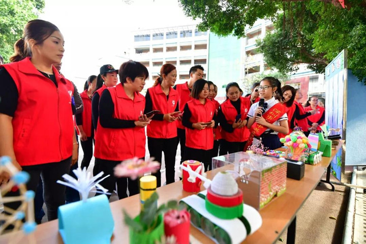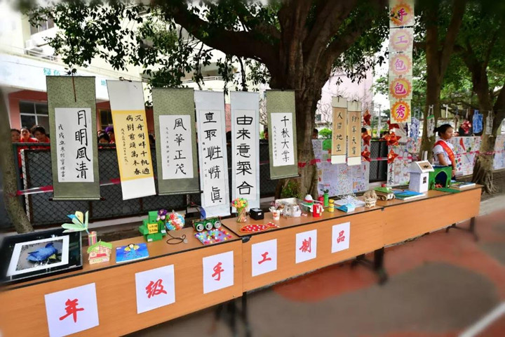 體育節(jié)開幕的同時,體現(xiàn)孩子們?nèi)姘l(fā)展素養(yǎng)的作品和成果展也同時進行。有豐富多彩的學(xué)科作品,有精巧精美的手工作品,有極具中華文化特色的書法及布藝作品,有富有創(chuàng)造力的創(chuàng)客作品等,碩果累累、琳瑯滿目。特別是各展區(qū)的小解說員如數(shù)家珍般的講解引得家長、來賓競相拍照,紛紛點贊!