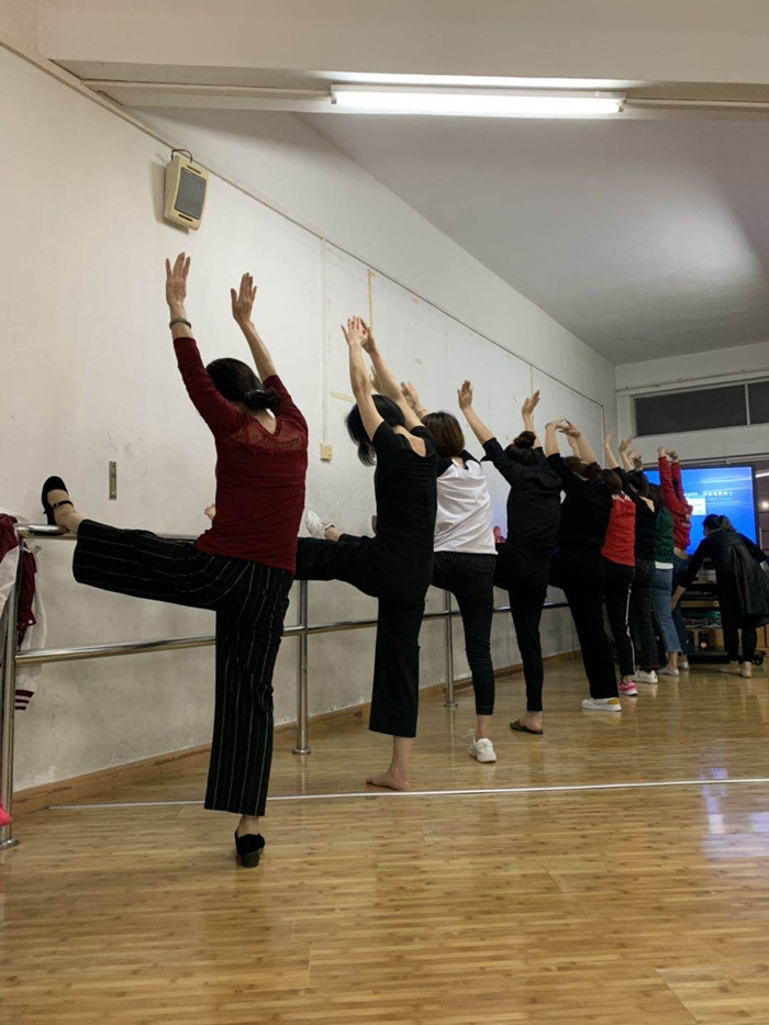 舞蹈社團(tuán)由小學(xué)部家委楊莉莎副主任負(fù)責(zé),舞蹈教練由學(xué)校彭老師擔(dān)任。這一社團(tuán)是清一色的媽媽社員組成。彭老師對(duì)學(xué)員的訓(xùn)前準(zhǔn)備、基本功訓(xùn)練、組合動(dòng)作等,均從專業(yè)的角度嚴(yán)格要求,為后期的練習(xí)和展示打下堅(jiān)實(shí)的基礎(chǔ)。