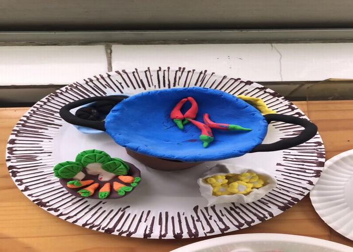 除了常規(guī)的書寫、繪畫、網(wǎng)絡(luò)搜索等學(xué)習(xí)活動(dòng),一年級(jí)的孩子們還根據(jù)各國(guó)飲食文化的不同,開展了“橡皮泥美食創(chuàng)意作品展”。