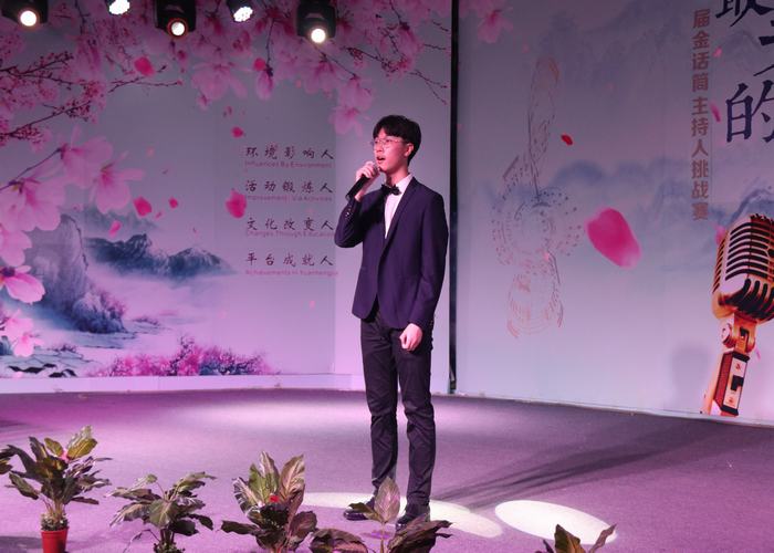 10號(hào)選手劉深同學(xué)的才藝展示是模擬主持,抑揚(yáng)頓挫,口若懸河;場景模擬,妙語連珠,讓人驚嘆莫名!