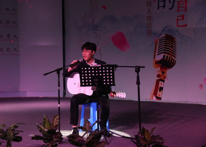 14號(hào)王超慧同學(xué)用一把吉自彈自唱一曲《成都》,觀眾的思緒隨著優(yōu)美的歌聲徜徉在成都街頭,眼前仿佛出現(xiàn)了一家極具鄉(xiāng)情鄉(xiāng)韻的小酒館。