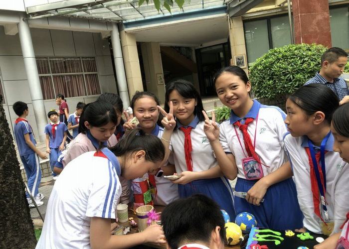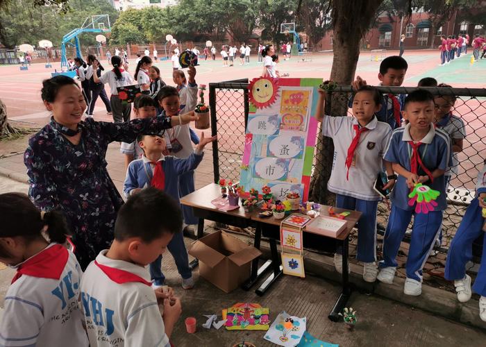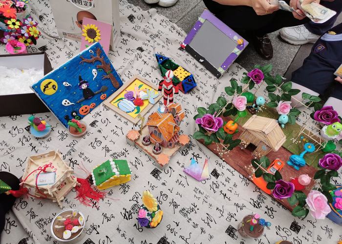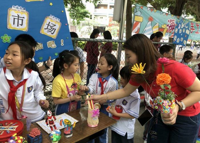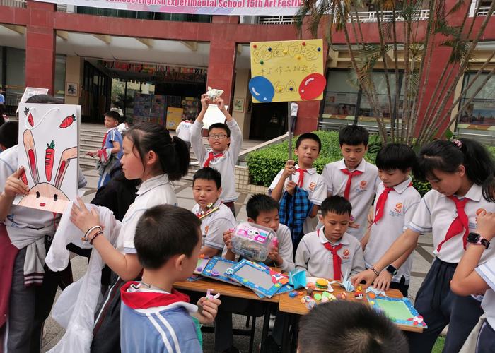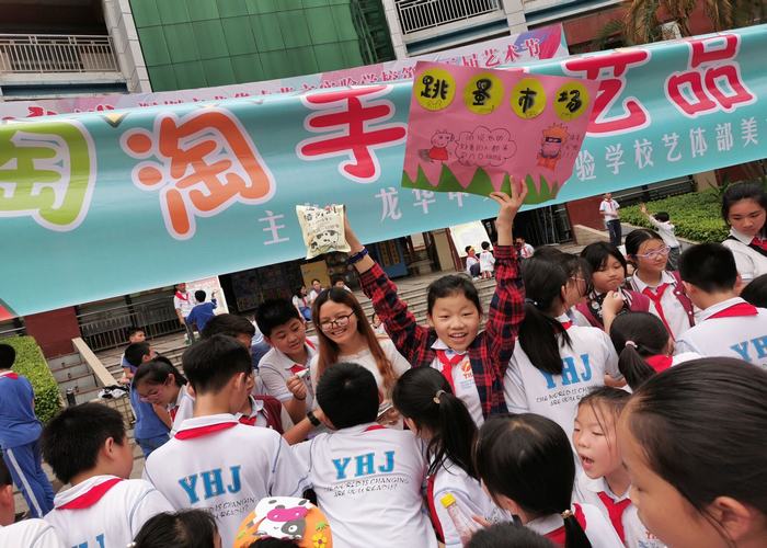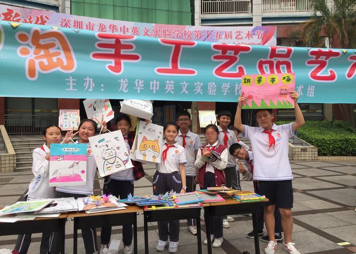 2019年5月10日下午第八節(jié)課時間,深圳市龍華中英文實驗學校校園里一片繁忙、熱鬧景象。哦!這是小學部美術組舉辦的手工作品跳蚤市場開市了。