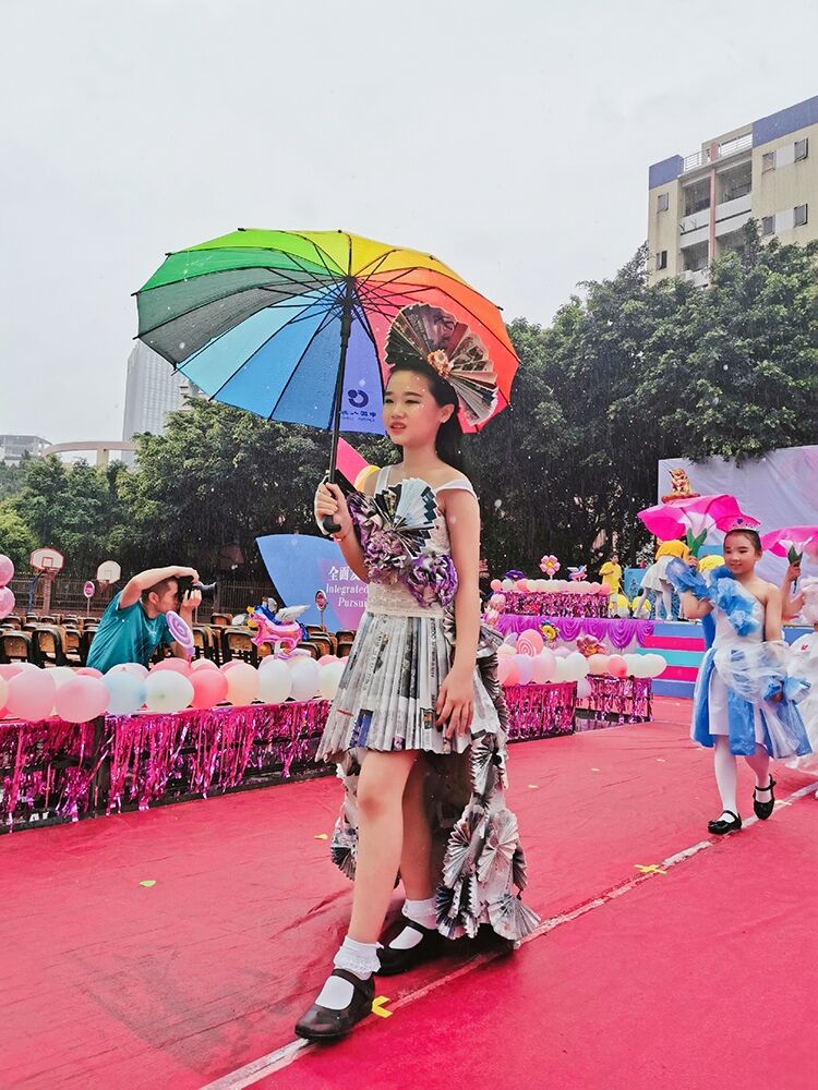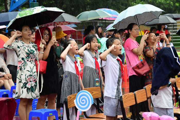第三篇章,著力展現(xiàn)孩子們的進(jìn)步和收獲。篇章節(jié)目涵蓋舞蹈、英語(yǔ)劇、科創(chuàng)、美術(shù)、經(jīng)典歌曲傳唱等多種藝術(shù)形式。舞蹈《小白翎》精湛的表演讓觀眾目不暇接;《科創(chuàng)未來(lái)》融創(chuàng)客、美術(shù)、手工為一體,充分展現(xiàn)了孩子的動(dòng)手能力和科創(chuàng)水平。最值得稱(chēng)贊的是,當(dāng)節(jié)目進(jìn)行到尾聲時(shí),天空竟下起了雨,表演《我們是共產(chǎn)主義接班人》的大隊(duì)委、中隊(duì)委們,在臺(tái)上面向隊(duì)旗、莊嚴(yán)宣誓、揮舞隊(duì)旗、齊唱隊(duì)歌,臺(tái)上臺(tái)下相呼應(yīng),風(fēng)雨之中見(jiàn)精神,受到來(lái)賓和家長(zhǎng)的高度贊揚(yáng)。