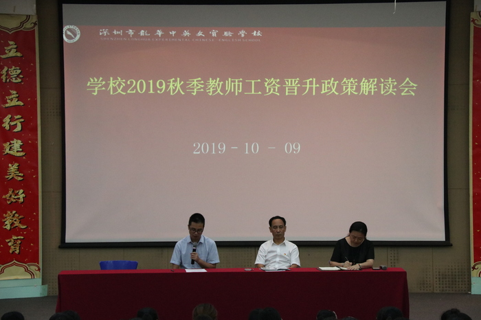 學(xué)校胡化忠副校長(zhǎng)從晉升原則、晉升標(biāo)準(zhǔn)等方面對(duì)本學(xué)年的工資晉級(jí)方案進(jìn)行了解讀,同時(shí)鼓勵(lì)大家努力提高業(yè)務(wù)能力,認(rèn)真做好本職工作,做出成效、做出業(yè)績(jī)。