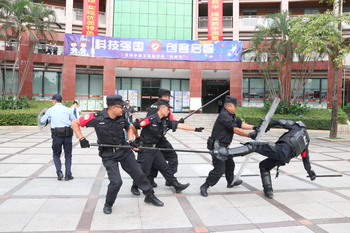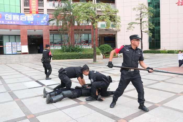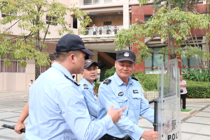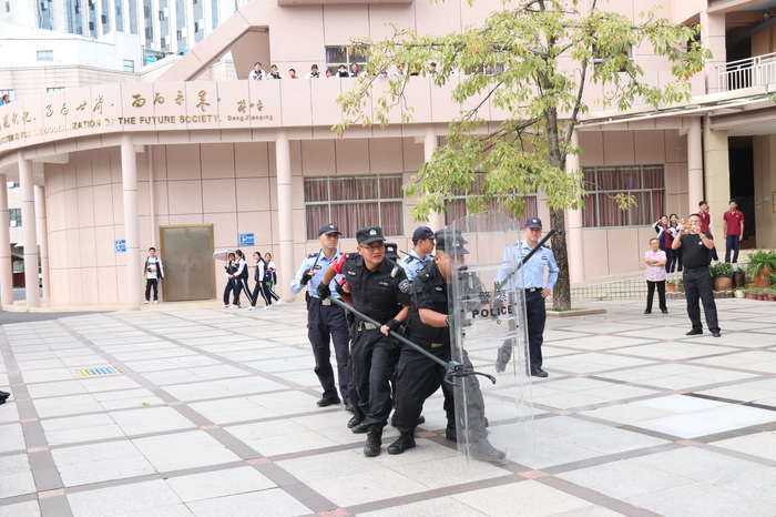 為進(jìn)一步強(qiáng)化我校師生的反恐防暴意識(shí),提高學(xué)校安保人員的應(yīng)對(duì)突發(fā)事件的能力,2019年10月30日下午,深圳市龍華區(qū)龍城派出所防恐沖鋒隊(duì)來(lái)我校開(kāi)展了反鞏防暴演練活動(dòng),同時(shí)對(duì)我校安保隊(duì)伍進(jìn)行了專(zhuān)業(yè)技能培訓(xùn)及實(shí)戰(zhàn)演習(xí)。