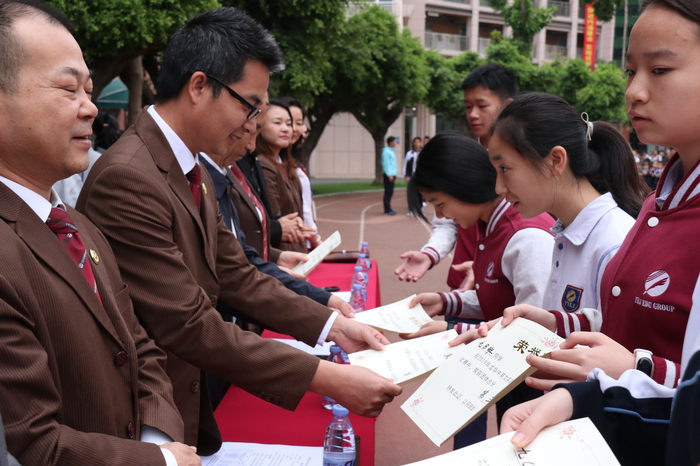 學(xué)校第15屆體育節(jié)經(jīng)過開幕式、親子運(yùn)動會、小學(xué)田徑賽、中學(xué)田徑賽等項(xiàng)目,歷時(shí)三天,已于12月6日圓滿結(jié)束。2019年12月16日,學(xué)校利用升旗儀式時(shí)間,舉行了第15屆體育節(jié)閉幕式活動。對團(tuán)體總分、優(yōu)秀節(jié)目、最佳方陣、體育道德風(fēng)尚、優(yōu)秀個(gè)人、優(yōu)秀團(tuán)隊(duì)進(jìn)行了集中表彰。