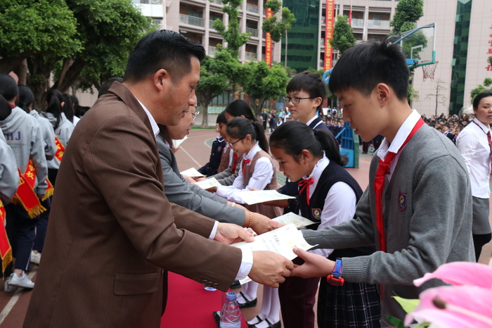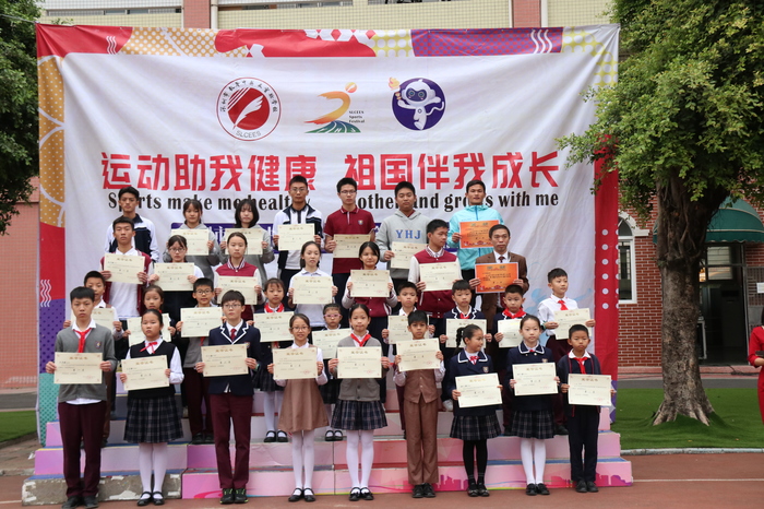 本次運(yùn)動會,共評出“運(yùn)動會團(tuán)體總分獎(jiǎng)”、“開幕式優(yōu)秀節(jié)目獎(jiǎng)”、“入場式最佳方陣獎(jiǎng)”、“體育道德風(fēng)尚獎(jiǎng)”、“優(yōu)秀個(gè)人獎(jiǎng)”、“優(yōu)秀團(tuán)隊(duì)獎(jiǎng)”等6類獎(jiǎng)項(xiàng),由全國名校長、學(xué)校周興國校長帶領(lǐng)各部門負(fù)責(zé)人為獲獎(jiǎng)師生、家長頒獎(jiǎng)。