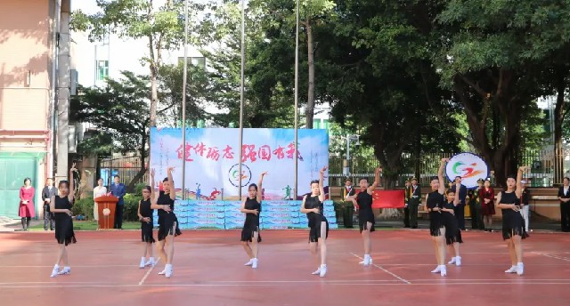 隨著運動員入場完畢,伴著悠揚的音樂,五年級學(xué)生手持彩花歡快入場,大型歌伴舞《歌唱共產(chǎn)黨》、《心愿》為全體師生獻上了一場美侖美奐的視聽盛宴,歌聲悠揚、場面壯觀,參演師生飽含深情表達對祖國的熱愛之情?;犹K、激情拉丁舞以及啦啦操特色表演輪番登場,跳繩中的高難動作、拉丁舞的激情奔放、啦啦操中的優(yōu)美組合,瞬時點燃全場熱情,在同學(xué)們的陣陣歡呼中整個校園成了歡樂的海洋。