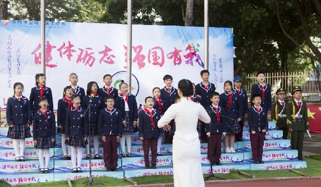 隨后,各年級方陣依次進場,一年級兩彈一星方陣、二年級雜交水稻方陣、四年級神舟飛船方陣、六年級奧運方陣、七年級深圳科技方陣、八年級建黨百年方陣……,一張張面孔稚嫩堅定、一個個方陣寓意深遠。青史如鏡,鑒照崢嶸歲月;初心如炬,輝映復(fù)興之路, 百年來,中國共產(chǎn)黨帶領(lǐng)中華民族從站起來、富起來到強起來,從改革開放和社會主義現(xiàn)代化建設(shè)新時期的解放思想、銳意進取,到中國特色社會主義新時代的自信自強、守正創(chuàng)新。夢想照進現(xiàn)實,只因奮斗從未停歇,只因夢想永不止步。