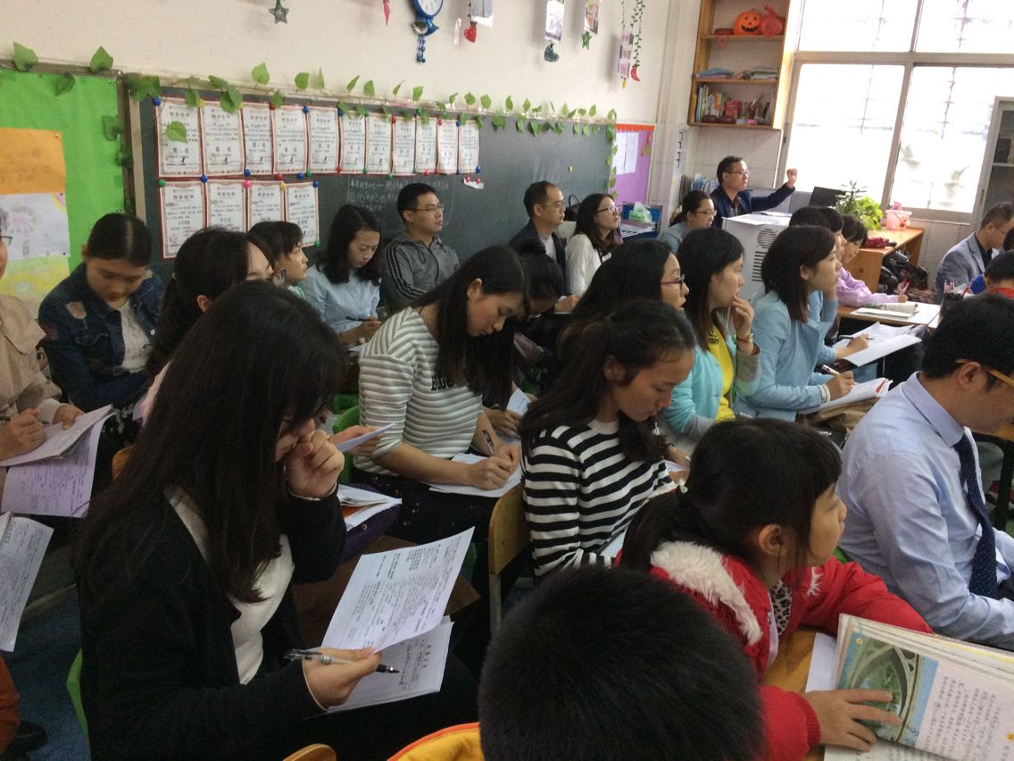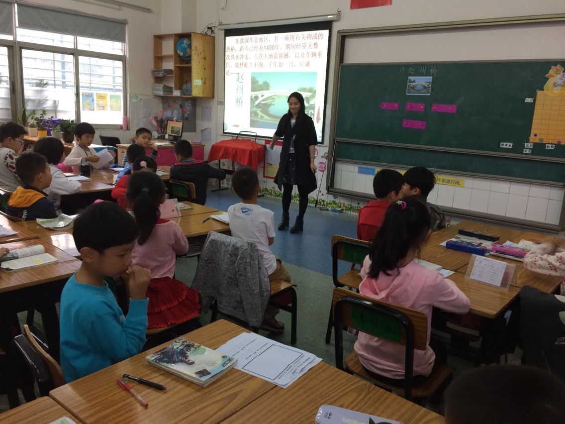 活動首先由中英文學(xué)校郭蘇陳老師和李松蓢學(xué)校曾老師,在中英學(xué)校的三(B)班和三(E)班,就《趙州橋》一文,上了兩節(jié)風(fēng)格各異的示范課。雖然由于氣溫的驟降有些冷,但是交流的老師們隊聽得認真,上課的孩子們個個都熱情高漲。兩個班的同學(xué)們同,不管是小組交流展示,還是個人和老師互動,都是那么認真,大方,自信,思路開闊,語言組織得有序流暢,而且能抓住問題的重點進行回答,充分展示了中英文學(xué)校國際部小班化,小組學(xué)習(xí)、展示的優(yōu)勢。而兩位老師在課堂上所展示的不同的教學(xué)法,也更讓大家在不停的思考中,眼前一亮,大有受益。郭蘇陳老師用她嫻熟的對課堂的駕馭,舉手投足間,一顰一笑里,和學(xué)生們在完美默契的互動中,淋漓盡致的展示了國際部的“明、學(xué)、研、展、測”五步習(xí)案教學(xué)法。而曾老師也帶著學(xué)生們,從字詞入手,在文章重點段落的分析中,讓學(xué)生充分的理解了文章的中心思想 。一首《祖國,我不用言語》的小詩,讓學(xué)生們在感受著語言的唯美中,結(jié)束了一節(jié)課的學(xué)習(xí)。