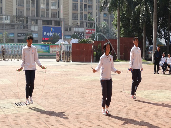 在比賽結束后,初中部的花樣跳繩隊也進行了表演。那一樣樣精彩的表演完全震驚了在場的每一位師生。所有師生口中不由得發(fā)出:“好棒!”的感嘆聲。