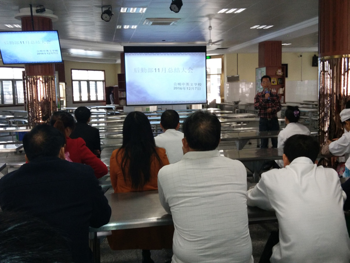 2016年12月7日上午9:30在B棟一樓餐廳,學校后勤部舉行了11月份的總結表彰大會。陳志鋒校長親自參加。