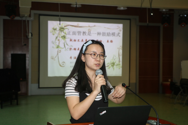 二年級的郭蘇陳老師說:“我每天都用微笑來迎接孩子們,給他們設(shè)置一個個美麗的‘圈套’,來引導(dǎo)他們快樂、健康地成長”!周琴老師則認(rèn)為正面教育給大家?guī)淼氖且粍┬撵`雞湯,讓老師們意識到特殊孩子的特殊行為是孩子成長的需要,要和善而堅定地去鼓勵,才能有更好的效果。五年級的楊柳靜老師為她放手給孩子去管理班級找到了理論依據(jù),學(xué)生的責(zé)任感和自律意識在實踐中更能得到提高;徐敏紅老師結(jié)合學(xué)校實施的成長銀行D幣富翁評比操作總結(jié)道:“只要多一點(diǎn)尊重、充分相信孩子們的能力,換位思考;孩子們會回報給你一個驚喜”!四位老師的分享與教育教學(xué)實踐緊密結(jié)合,引發(fā)更多老師的思考,報告廳里,不時傳來陣陣掌聲。