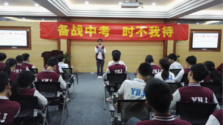 為調(diào)動(dòng)初三年級全體學(xué)生備戰(zhàn)中考的積極性,激勵(lì)學(xué)生珍惜時(shí)間,刻苦學(xué)習(xí),努力拼搏,為校爭光的精神,深圳市龍華中英實(shí)驗(yàn)學(xué)校初三學(xué)生于12月15日在三樓培訓(xùn)室舉行了以“備戰(zhàn)中考 時(shí)不我待”主題教育活動(dòng)。