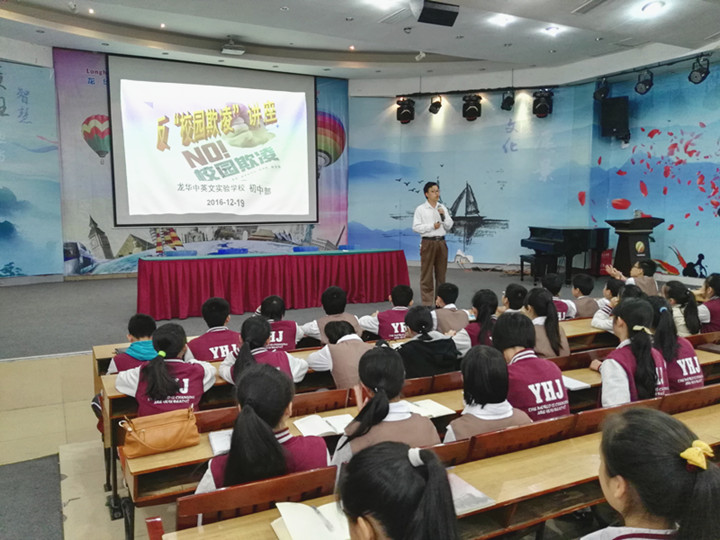 2016年12月19日,深圳市龍華中英文實(shí)驗(yàn)學(xué)校初中部開展了“反校園欺凌,建平安校園”的主題講座活動(dòng)。