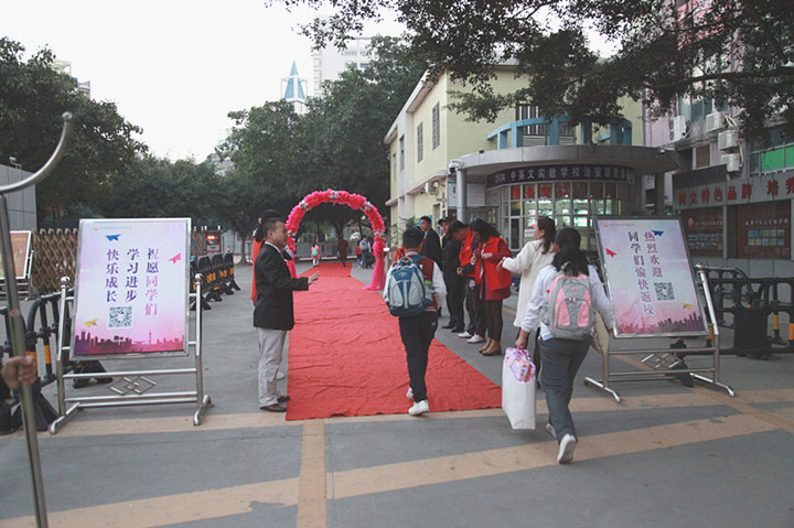 2017年02月13日,是新學(xué)期學(xué)生入學(xué)的美好日子。深圳市龍華中英文實(shí)驗(yàn)學(xué)校干部師生代表,在校門口舉行了一場別開生面的新學(xué)期學(xué)生入學(xué)歡迎禮。受到了第一天來校上班上學(xué)的師生、送孩子入學(xué)的家長的廣泛好評,教師家長紛紛發(fā)微信、QQ相冊曬照片、視頻,紛紛稱贊龍華中英文新學(xué)期的新風(fēng)尚。
