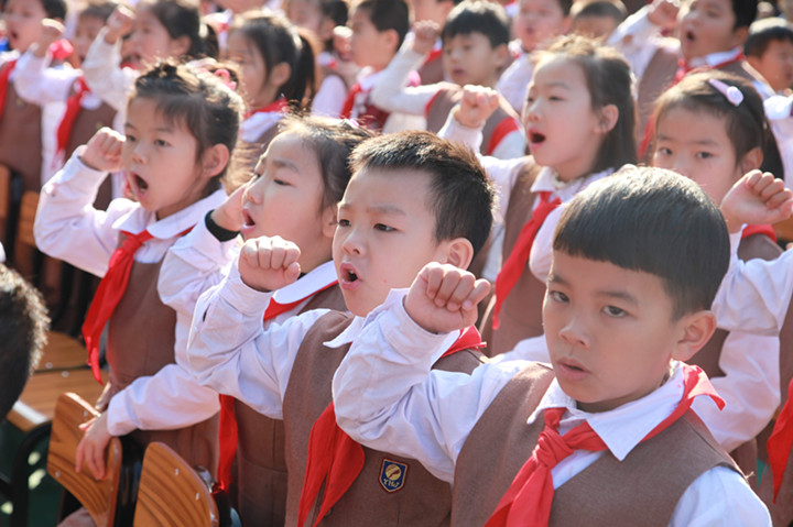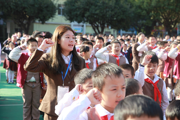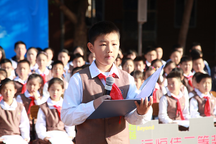 在升旗儀式上,金玉善副校長為大家宣讀了《新學(xué)期公約》,為同學(xué)們的學(xué)習(xí)、行為、禮儀指明了方向;師生代表表演的詩朗誦《緊握世界的手,編織美好的夢》,學(xué)生表演唱《青春修煉手冊》等,以聲情并茂、切合實際、輕松勵志深受師生的喜愛;師生“少年智則國智,少年強(qiáng)則國強(qiáng),我們會,好好學(xué)習(xí)、天天向上,緊握世界的手,編織美好的夢”的團(tuán)隊勵志呼號更是把活動推向了高潮。會場氣氛熱烈、士氣高昂!