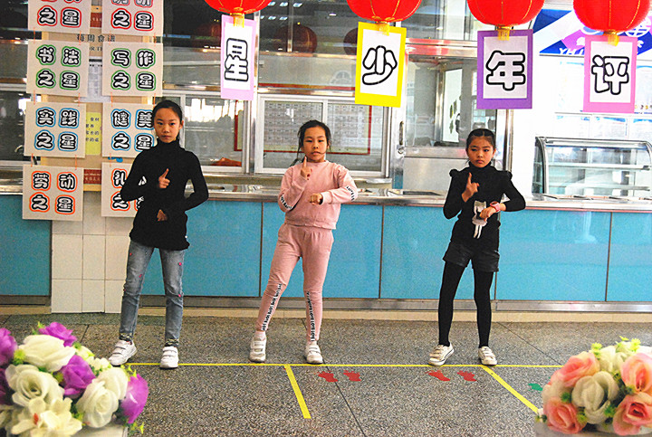 寒假期間,還有一些同學學習了一技之長,并借“十佳金星少年”評選這個平臺,向大家進行展示匯報:如三D班的唐雅詩同學表演的舞蹈就得到了大家的贊譽。活動間隙的幾個小節(jié)目穿插,帶動了全場的高潮!