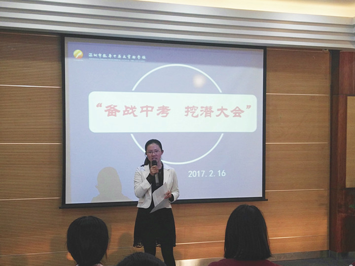 陽春二月,萬物萌發(fā),清風(fēng)拂面,木棉依依,在這孕育希望的季節(jié)里,我們聽到?jīng)Q戰(zhàn)的號角已經(jīng)吹響!為了增強初三學(xué)子迎戰(zhàn)中考的信心,以良好的精神狀態(tài)備戰(zhàn)中考,形成良好的學(xué)習(xí)氛圍,2017年02月16日下午在特級教師、初中部張翠玲主任,初中部德育領(lǐng)導(dǎo)李劍鋒同志的組織下,初三全體師生在三樓培訓(xùn)中心開展了以“備戰(zhàn)中考,挖掘潛力”為主題的中考備考活動。