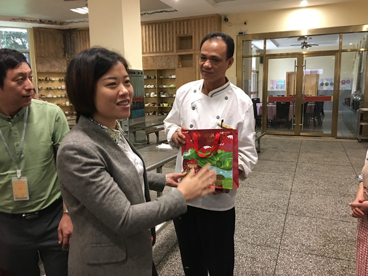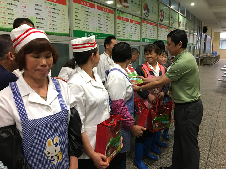 2017年3月31日下午,后勤服務(wù)公司食品采購部李莉萍總經(jīng)理親臨我校對食堂員工進行表彰,并同鄧木金總經(jīng)理,龍華中英文實驗學(xué)校王開利副校長給食堂員工頒發(fā)了獎品。