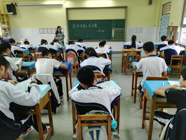 2017年4月5日下午,初中部全體學(xué)生在各自教室,開展了以年級為單位的“古詩詞默寫比賽”。比賽試題分為原文默寫、理解性默寫、課外詩詞默寫和古文化素養(yǎng)提升等題型。