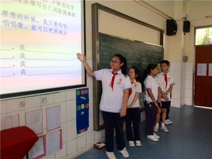老師們采用多種新穎的教學(xué)手法,借助現(xiàn)代多媒體,開展生動(dòng)活潑的教學(xué),使學(xué)生在輕松愉快的氣氛中當(dāng)堂掌握并鞏固所學(xué)的內(nèi)容。課堂上教師傾注愛心耐心講課,給每位學(xué)生展示自我的機(jī)會(huì),讓他們認(rèn)真思考,積極參與課堂討論,師生互動(dòng)和諧,課堂氣氛活躍、民主。如:四年級(jí) 《我長大了》主題班會(huì)設(shè)計(jì)巧妙,會(huì)上家長與孩子們以寫信的方式共同說出心中的想法,真情流露,場面感人。五年級(jí) 《微笑著面對困難》主題班會(huì)設(shè)計(jì)新穎,會(huì)上家長與孩子們以分享了面對困難應(yīng)該如何積極地去面對,家長們也感受到了孩子成長的煩惱,場面溫馨。