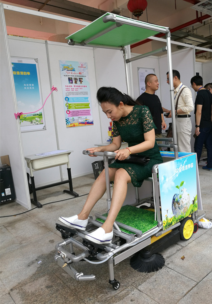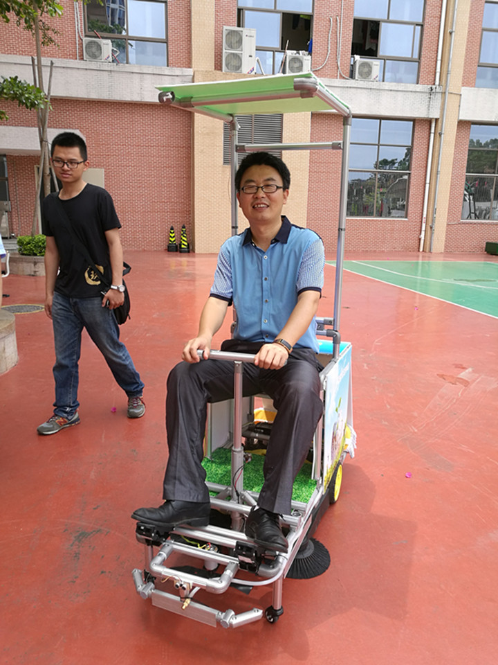 因?yàn)辇埲A中英文實(shí)驗(yàn)學(xué)校是深圳大學(xué)授牌的《FEG智能無人車》創(chuàng)客實(shí)踐基地,作品制作過程中,運(yùn)用的工程結(jié)構(gòu)、3D設(shè)計(jì)、Arduino編程、激光切割等技術(shù)得到了深圳大學(xué)的相關(guān)老師與技術(shù)指導(dǎo),該車可以支持有人駕駛及手機(jī)遠(yuǎn)程無人控制等?!缎@清掃車》可以實(shí)現(xiàn)校園落葉垃圾清掃、室內(nèi)球場的托地清潔、足球場草坪修剪、太陽能充電等功能。是一項(xiàng)節(jié)能、環(huán)保、多功能的創(chuàng)客作品。