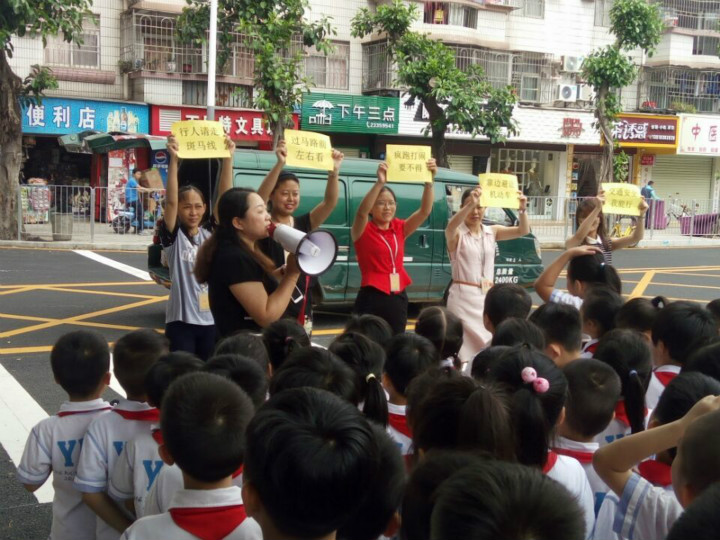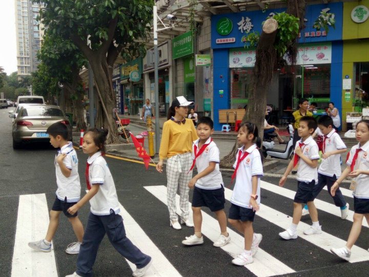 2017年5月19日,深圳市龍華中英文實(shí)驗(yàn)學(xué)校小學(xué)部的班主任老師帶著孩子們,在學(xué)校大門(mén)丁字路口路段上了一節(jié)特別的“交通安全實(shí)踐課”,目的是讓孩子們?cè)谡鎸?shí)的生活情境中認(rèn)識(shí)交通安全標(biāo)識(shí)、學(xué)習(xí)交通安全知識(shí)、掌握安全通行要領(lǐng)、提升生命安全意識(shí)。