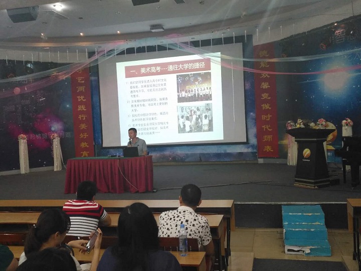 2017年9月28日晚上19:30,遠(yuǎn)恒佳國際教育城遠(yuǎn)方美術(shù)中心劉明登主任;教育城六藝傳媒項(xiàng)目負(fù)責(zé)人劉孟子老師前往龍華中英文實(shí)驗(yàn)學(xué)校出席了高中部高一新生家長會。本次會議劉明登主任為高一新生家長詳細(xì)介紹了高中美術(shù)高考工作相關(guān)事宜,有助于高一學(xué)生在高中階段提前為高考專業(yè)做出選擇。六藝傳媒劉孟子老師給家長朋友們分享了今年傳媒高考的驕人成績,為傳媒項(xiàng)目招生工作打下了良好的基礎(chǔ)。對于高考專業(yè)的選擇,家長朋友們的各種疑問在會上一一得到了專業(yè)的解答,且對我們的高考實(shí)力項(xiàng)目表示肯定。