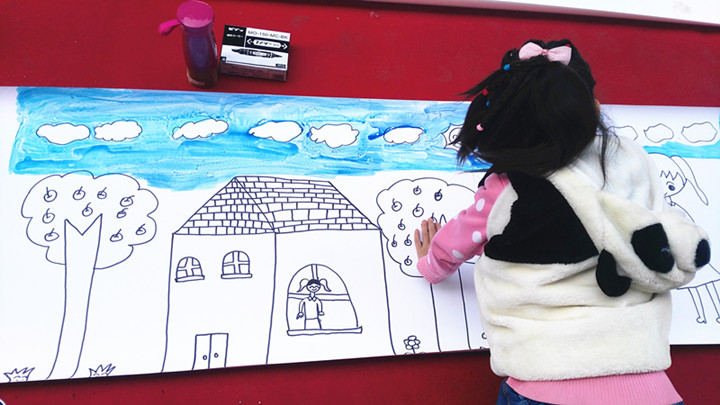 百米畫卷已準(zhǔn)備就緒,就等小朋友們閃亮登場了。