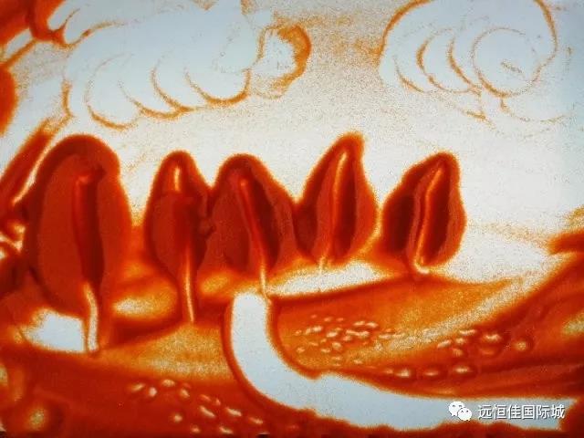手指為筆,揚沙起畫。一塊板,一盤沙即是一幅畫,一個故事。接下來請欣賞一下我的作品吧!
