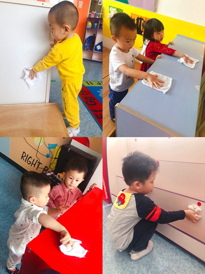 從小培養(yǎng)孩子自己的事情自己做,我們不僅僅培養(yǎng)自我服務的意識,還要培養(yǎng)服務他人的意識。結合五一勞動節(jié),我們的孩子體驗了勞動帶來的快樂。請家長在家里也鼓勵寶寶做些力所能及的事情哦!