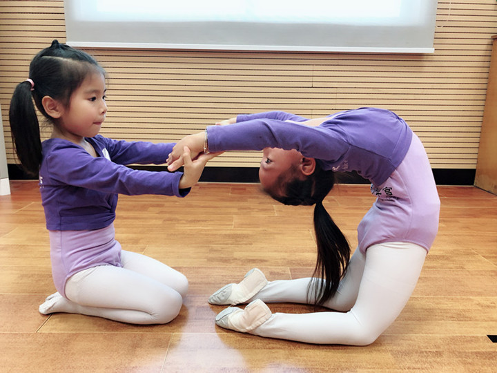 剛接觸的一級(jí)班的孩子,基本功設(shè)有前壓腿、旁壓腿,壓跨,地面卷腰,地面下腰。體能訓(xùn)練有背肌訓(xùn)練、腹肌訓(xùn)練、手臂力量、腿部力量。力量方面的都是為了以后高級(jí)練習(xí)技巧打基礎(chǔ)的。