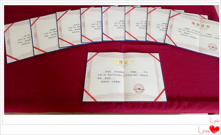 遠(yuǎn)恒佳少年宮參加深圳海雅大劇院第三屆"舞動(dòng)中華"全國(guó)少兒才藝電視大賽,中國(guó)舞六級(jí)班《響扇》榮獲特金獎(jiǎng)。中國(guó)舞三級(jí)班《天天向上》榮獲金獎(jiǎng)。