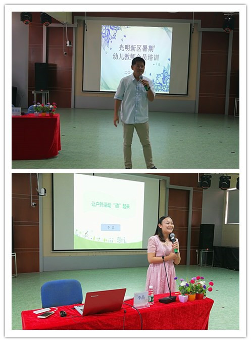 美籍華人教育專家蔡偉忠博士《在行為中落實師德》的講座,是關(guān)于教師職業(yè)幸福感的心路歷程分享,其中“改變不了環(huán)境,可以改變心態(tài);選擇不了父母,可以選擇朋友;決定不了智商,可以提高情商”三句話,讓在場的老師們受益匪淺。蔡偉忠博士的講座即生動有趣又很接地氣,與在座的學(xué)員產(chǎn)生積極地互動與共鳴;教科研中心朱文靜教研員的《幼兒園環(huán)境的規(guī)劃與利用》講座,幫助老師們規(guī)范幼兒園室內(nèi)外環(huán)境的合理規(guī)劃、如何整合園所現(xiàn)有資源提供了科學(xué)的指引;孫曼麗老師的《美術(shù)活動與藝術(shù)空間的創(chuàng)設(shè)》分享,讓全體老師受益匪淺,產(chǎn)生立刻想回到幼兒園對自己園的美術(shù)室進(jìn)行改造的沖動;段帆老師《一日生活皆課程》的講座,再次幫助老師們梳理生活中的教育契機(jī)與教育方法;趙永忍老師的《幼兒體能活動的設(shè)計》分享,現(xiàn)場試教,生動有趣,學(xué)員感嘆:沒想到一節(jié)體能活動竟然可以如此豐富有效;唐艷老師的《一日活動的組織策略》講座,為老師們開展幼兒園日常各類活動,提供了科學(xué)的指導(dǎo);而來自公明第二幼兒園的李晶園長的《讓戶外活動“動”起來》的講座,從戶外活動的重要性、戶外活動的組織策略進(jìn)行了分享學(xué)習(xí),案例豐富,實操性強(qiáng),讓教師們充分認(rèn)識到戶外活動的組織同樣重要,同時了解從環(huán)境分設(shè)到活動組織的有效策略。