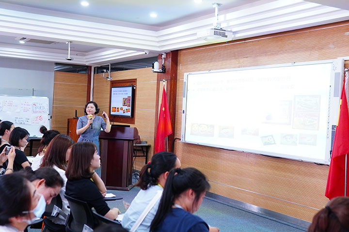 陳麗芬老師從晨談的由來、晨談墻的梳理、晨談內(nèi)容選擇、談話內(nèi)容的設(shè)計(jì)等和大家進(jìn)行了全面及細(xì)致的講解,并以生動、具體的事例來幫助教師理解內(nèi)容。