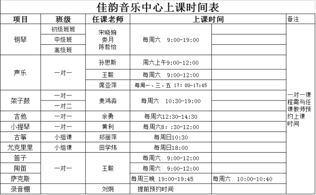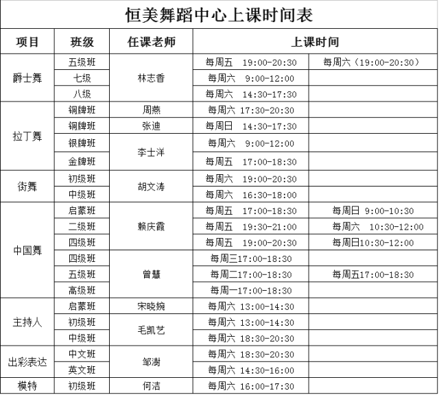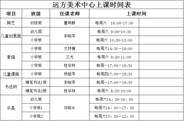 遠(yuǎn)恒佳國際教育城藝術(shù)中心2017春季課程安排