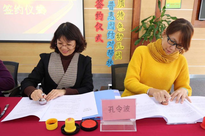 簽約儀式當(dāng)天龍華中英文實驗學(xué)校幼兒園作為深圳市60多家優(yōu)質(zhì)特色示范園之一,園長孔令波先后與龍華樂景幼兒園、大浪幸福小天使幼兒園、觀瀾新富龍幼兒園簽訂了結(jié)對幫扶協(xié)議。