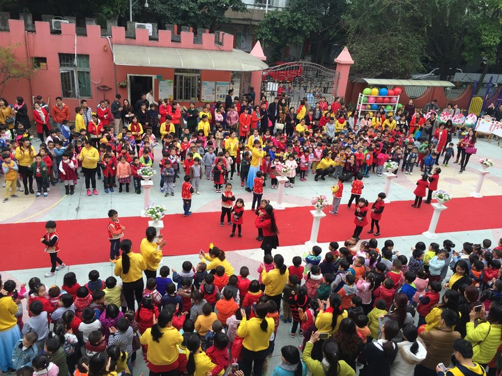 一大早,幼兒園里歡歌喜地,園長和老師們已經(jīng)盛裝打扮,早早地在門口迎接親愛的小朋友和家長們的到來!