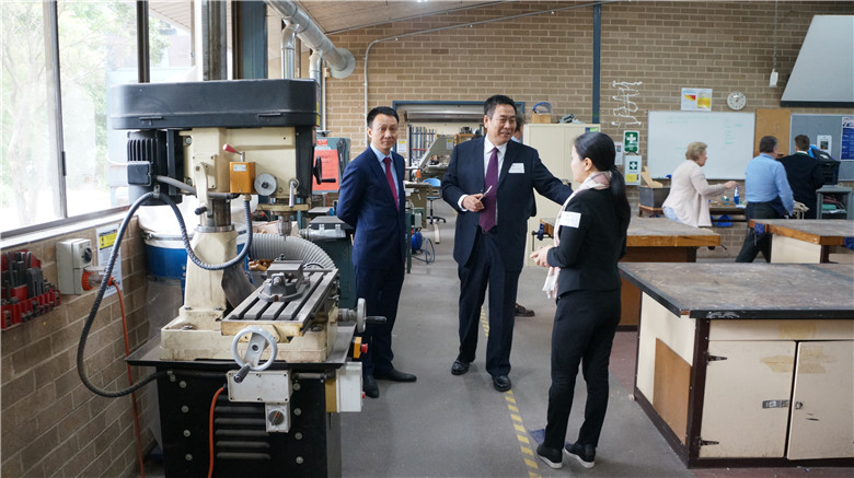 (圣保羅文法學(xué)校)集團(tuán)領(lǐng)導(dǎo)參觀學(xué)校的木工實(shí)驗(yàn)室,澳大利亞學(xué)校同樣注重學(xué)生動手能力的培養(yǎng)