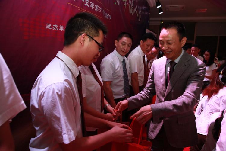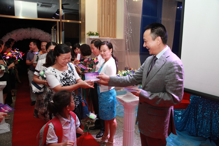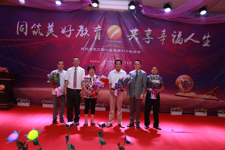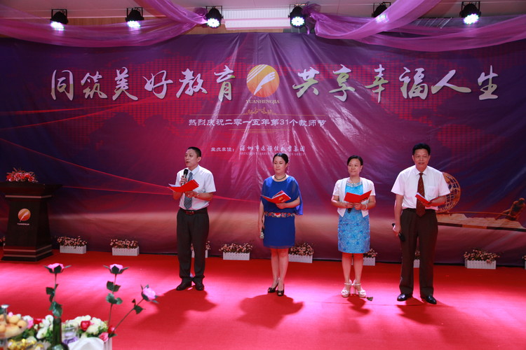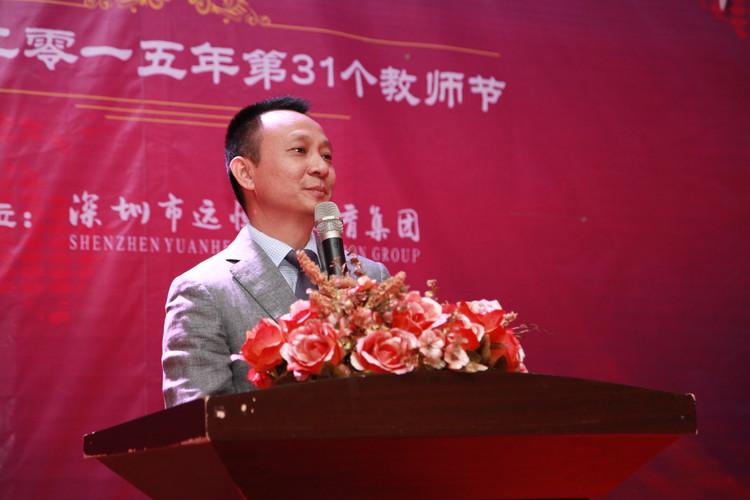 2015年9月9日晚,深圳市遠(yuǎn)恒佳教育集團(tuán)隆重舉行主題為“共筑美好教育,共享幸福人生”的慶祝第31個教師節(jié)、中秋節(jié)活動。集團(tuán)3所學(xué)校、13所幼兒園、國際教育城、公明少年宮等單位近300多名中高層管理人員歡聚一堂,共同慶祝這個屬于自己的節(jié)日。深圳前海匯豐達(dá)資產(chǎn)管理公司投資總監(jiān)盧學(xué)鵬、深圳市云企電商信息技術(shù)有限公司董事長毛清平、深圳前海牛牛財富互聯(lián)網(wǎng)金融公司總監(jiān)張廣輝、廣州銀行龍華支行行長、金融平臺公司風(fēng)控總監(jiān)劉銳、深圳市云企眾籌平臺公司總經(jīng)理李剛、中國安芯(上市公司)執(zhí)行總裁、云企公司董事沈睿等嘉賓蒞臨活動現(xiàn)場,與大家一起歡慶第31個教師節(jié)。慶?;顒釉谝黄矐c祥和的氛圍中拉開了序幕,董事會領(lǐng)導(dǎo)向與會人員贈送賀卡與鮮花,進(jìn)行有趣的音樂互動游戲。