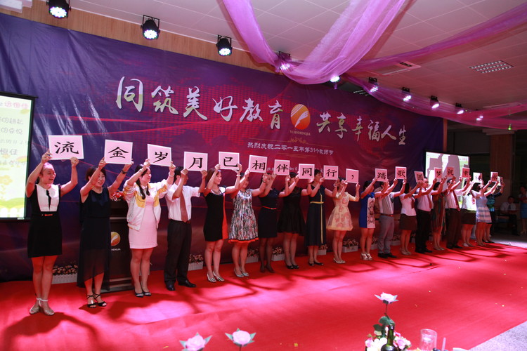 遠(yuǎn)恒佳教育集團(tuán)總裁宋遠(yuǎn)標(biāo)先生為慶?;顒又罗o。他代表董事會向遠(yuǎn)恒佳全體教職工致以節(jié)日的祝福,對全體教工為教育事業(yè)和學(xué)校發(fā)展所付出的辛勤勞動與無私奉獻(xiàn)表示衷心的感謝,回顧了89年開辦安記餐廳、93年開辦遠(yuǎn)東裝飾部開始積累了辦學(xué)的第一桶金后,集團(tuán)辦學(xué)18個年頭的發(fā)展歷程,要求遠(yuǎn)恒佳人把心留住、用心工作、關(guān)注細(xì)節(jié)、傳播正能量、優(yōu)化服務(wù),勉勵大家實現(xiàn)教育集團(tuán)與自身發(fā)展的雙重飛躍,實現(xiàn)國際教育由規(guī)模發(fā)展轉(zhuǎn)型為高端發(fā)展,共同創(chuàng)建一流國際教育品牌;鼓勵大家滿懷創(chuàng)造的激情,用心、陽光、快樂、幸福地度過一生。宋總用真摯的心傳遞了他十八年來激情、執(zhí)著、不悔的教育情懷,表達(dá)了對全體遠(yuǎn)恒佳人深切的關(guān)愛。他說:“現(xiàn)在,我已不再屬于我自己,也不再屬于我的家人,我完完全全屬于1500名教師、15000名學(xué)生與家長。將來,我將永遠(yuǎn)屬于全體遠(yuǎn)恒佳人、遠(yuǎn)恒佳學(xué)生與家長”。他用愛心、責(zé)任、智慧和激情,用所有的時間去追尋自己的教育之夢,令人感動。