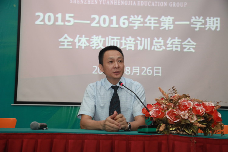 遠(yuǎn)恒佳集團(tuán)總裁宋遠(yuǎn)標(biāo)先生高度重視本次暑期培訓(xùn),親自擔(dān)任講師,給老師們作了題為《引進(jìn)先進(jìn)教育體系,共建美好國(guó)際教育》的主題講座,并在總結(jié)講話時(shí),對(duì)全體教職工提出優(yōu)化管理體系、狠抓校本教研、提升教學(xué)質(zhì)量、培養(yǎng)良好習(xí)慣、優(yōu)化評(píng)價(jià)體系、抓好隊(duì)伍建設(shè)等期望。