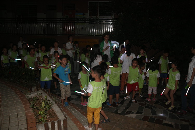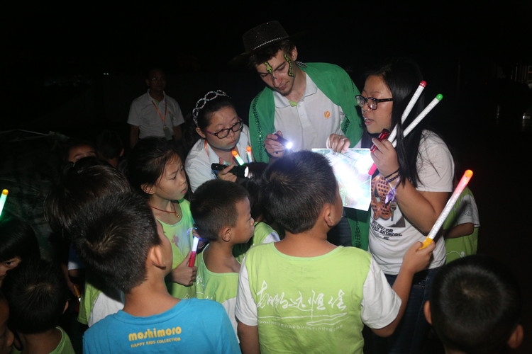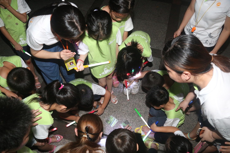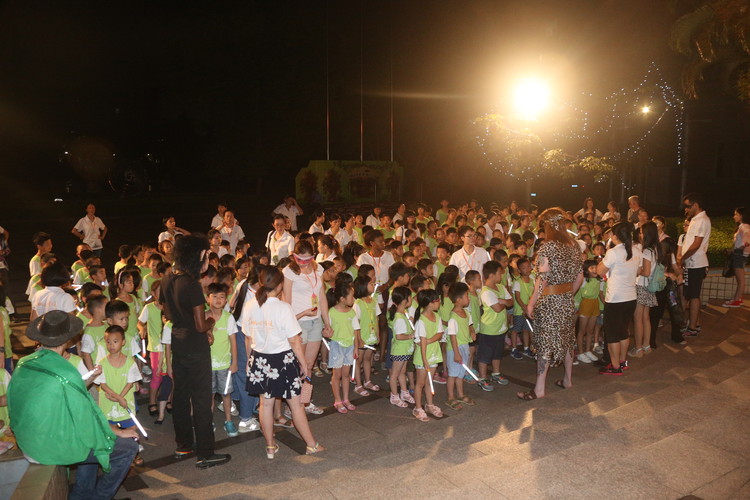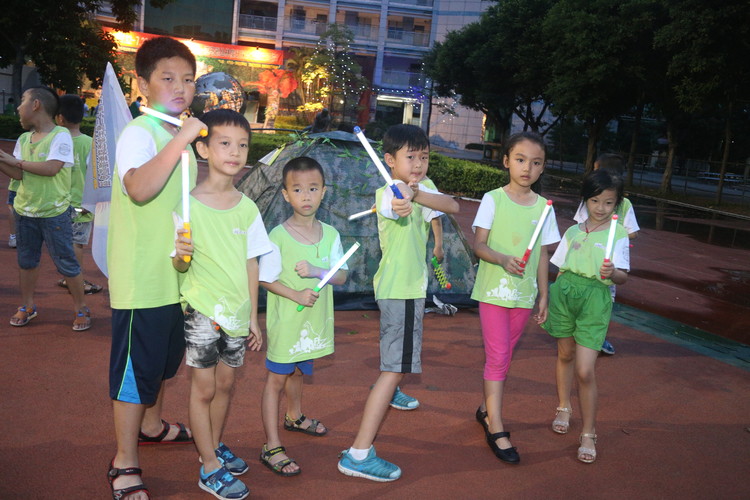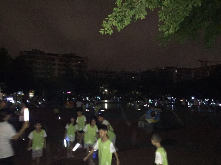 整個操場霓虹閃耀,小營員們興奮而又激動地?fù)]動著手中五顏六色的熒光棒,開啟了一場驚險而又刺激的尋旗之旅。