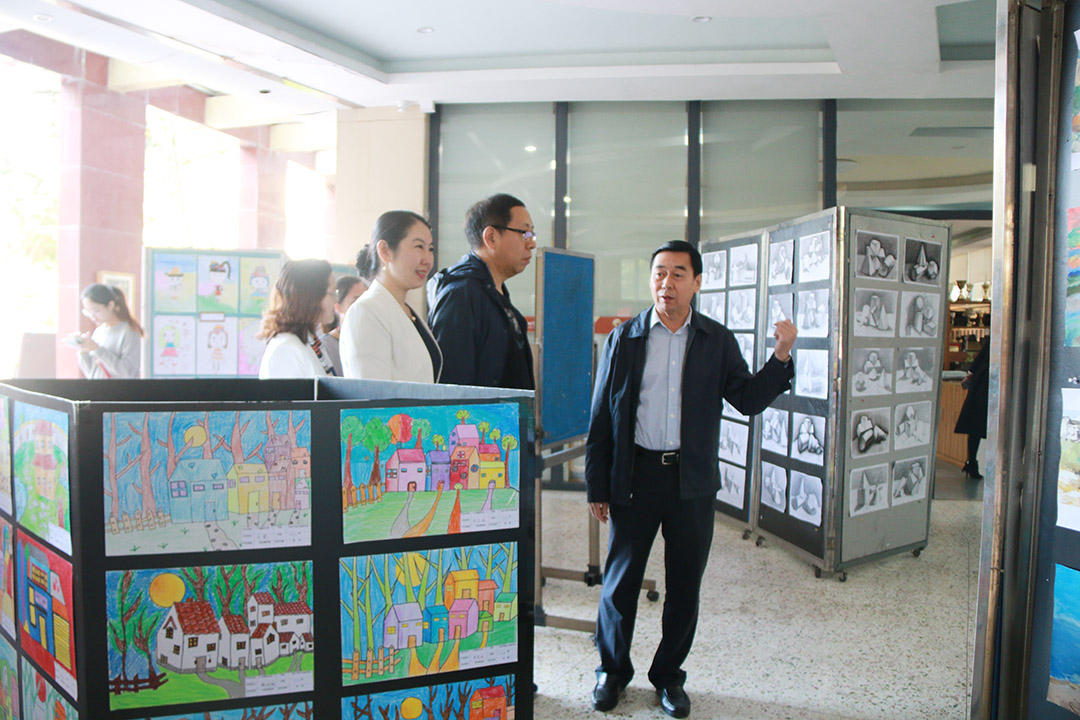 接著,王教授一行來(lái)到龍華中英文實(shí)驗(yàn)學(xué)校參觀,在卜祥林校長(zhǎng)的帶領(lǐng)下,王教授一行興致勃勃的參觀了學(xué)校素質(zhì)教育成果展示區(qū)、社會(huì)資源中心、國(guó)際交流中心等地,詳細(xì)了解了學(xué)校國(guó)際化教育發(fā)展情況。王教授對(duì)學(xué)校的辦學(xué)特色和辦學(xué)理念非常認(rèn)可,希望學(xué)校越辦越好,培養(yǎng)出更多優(yōu)秀學(xué)子。