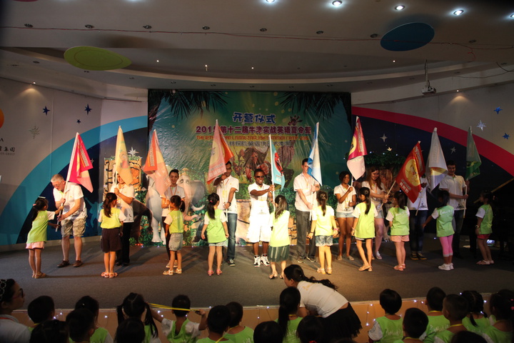 “開營(yíng)啦!開營(yíng)啦!”2015年7月12日,激動(dòng)人心的第十二屆牛津?qū)崙?zhàn)英語(yǔ)夏令營(yíng)——亞馬遜叢林探險(xiǎn)之旅正式開營(yíng)!這里有Jungle Cats(叢林貓班)、Simba(獅子王班)、Jaguars(美洲豹班)、Angry Birds(憤怒的小鳥班)、Phoenix(鳳凰班)、Tarzan(泰山班)、Fruity Bats(水果蝙蝠班)等,瞬間,龍華中英文實(shí)驗(yàn)學(xué)校校區(qū)變成了熱鬧非凡的“亞馬遜叢林”,來自各校園的233名小營(yíng)員在滿懷期待中即將開始一段神秘之旅。