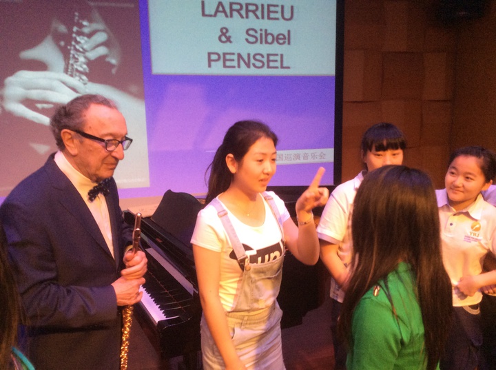 長笛是現(xiàn)代已知的樂器家族中最古老的成員之一,其音色柔美清澈,音域?qū)拸V,演奏技巧華麗多樣。2015年4月22日晚,法國長笛大師馬克桑斯·拉厄爾和西貝爾·潘瑟在深圳大學(xué)師范學(xué)院音樂廳巡演,深圳市龍華中英文實(shí)驗(yàn)學(xué)校組織初中實(shí)驗(yàn)班學(xué)生親臨現(xiàn)場,享受了這次音樂大餐,進(jìn)行了一次心靈與長笛的親密對(duì)話。