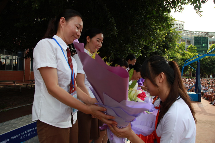 開學(xué)典禮在莊嚴(yán)的升國旗儀式中拉開了序幕,接著進(jìn)行了“教師典型事跡分享”,在上學(xué)期工作中取得優(yōu)異成績的小學(xué)普通部胡秀玲,實驗部馬定云、祝梳妝,藝體組林志香,初中部張?zhí)m香,高中部劉芬等六名老師,作為我校先進(jìn)教師的代表,先進(jìn)事跡在典禮上獲得了分享,在同學(xué)們獻(xiàn)鮮花的活動中,將表彰先進(jìn)和感謝師恩的意愿傳遞給了每一位與會者。