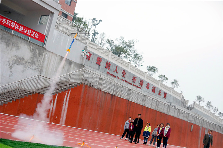“嗖”“嗖”“嗖”……學(xué)校航模隊(duì)在奧體中心進(jìn)行了火箭發(fā)射表演,一枚枚火箭騰空而起,在天空打開(kāi)美麗的傘花,在同學(xué)們的歡呼聲中徐徐降落。